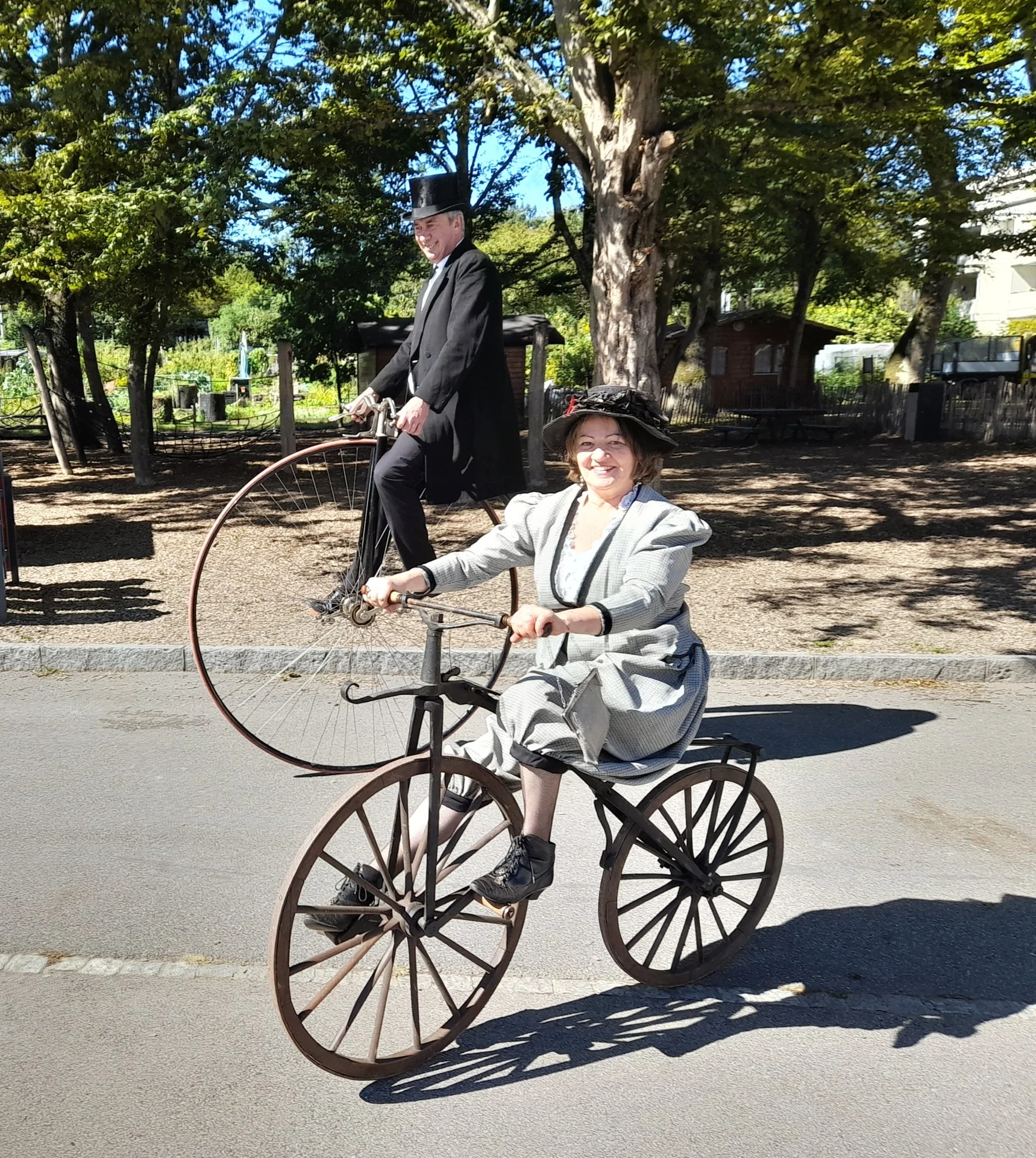 Surgis d’un autre siècle, d’élégants et élégantes vélocipédistes en costumes d’époque font revivre l’histoire des incroyables vélocipèdes, de 1817 aux années 1920.